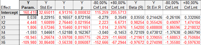 | Х6 | 0.18 ÷ 0.54 | 0.356 | –109.980 |