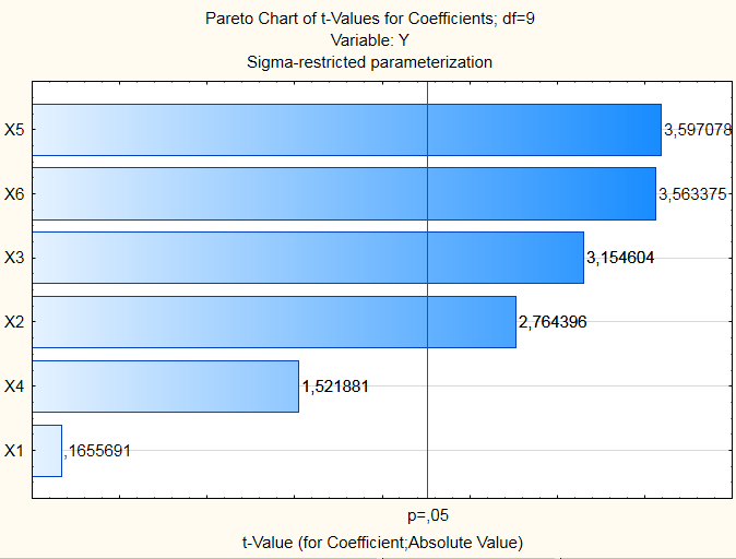 During the experiment, the parameters X1–X6 were checked in order to determine the most significant among them.
