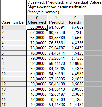 Model assessment: in general, the multiple correlation R = 0.819 is quite strong (fig. 2); the significance of the coefficients in the variables Х1–Х6 is shown (fig. 3); in the table of residuals the degree of accordance of the model in this experiment is visible (fig. 4).