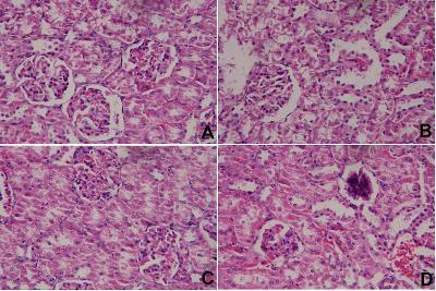 As shown in fig. 6, the renal tissue of the control and ZnO NPs-treated animals showed an identical kidney structure with normal renal tubules and glomeruli. AlCl3 intoxication for 42 d resulted in swelling of epithelial cells, edema of the inter-tubular spaces, focal hemorrhage, inflammatory cell infiltration, vacuolation, and development of intraluminal casts as observed previously [5]. Pre-administration of ZnO NPs minimized the pathological alterations induced by AlCl3 exposure in kidney tissue.