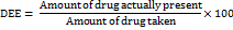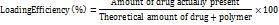 To determine loading efficiency, microballoons were taken, thoroughly triturated and 100 mg drug equivalent microballoons were placed in 100 ml beaker containing 50 ml of 0.1N HCL. The beaker was subjected to constant stirring on a magnetic stirrer at 100 rpm. After 3 h, the sample was withdrawn and the absorbance was measured at 283 nm against 0.1N HCL as blank by thermo UV spectrophotometer. Percentage of drug entrapment and the percentage loading efficiency were calculated as following: