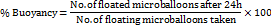 From each formulation, 100 microballoons were taken in a 100 ml beaker containing 70 ml of water and allowed to stand for about 24 h. After 24 h, the number of microballoons floating on the surface was observed [11-15].