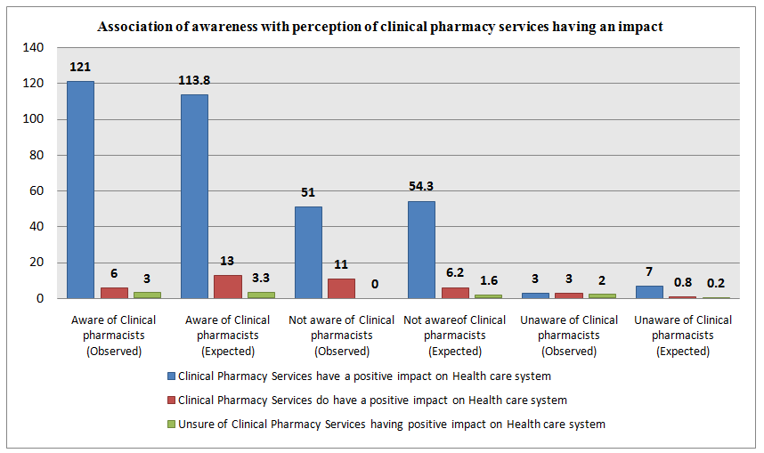 Fig. 1: Association of awareness and perception of clinical pharmacy services having an impact on health care system