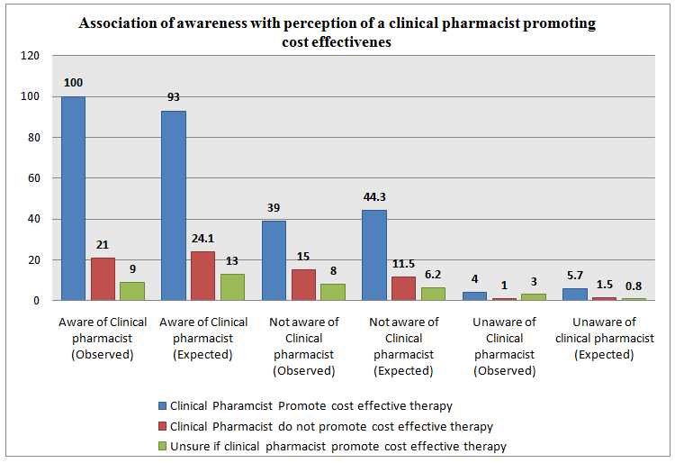 Fig. 2: Association of awareness with perception of a clinical pharmacist promoting cost effectiveness.