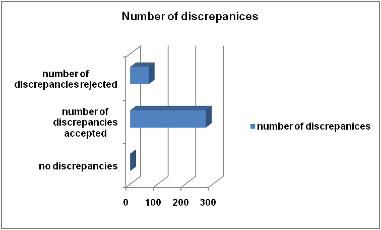 | Number of discrepancies accepted | 60(73.1%) | 274(80.35%) |
