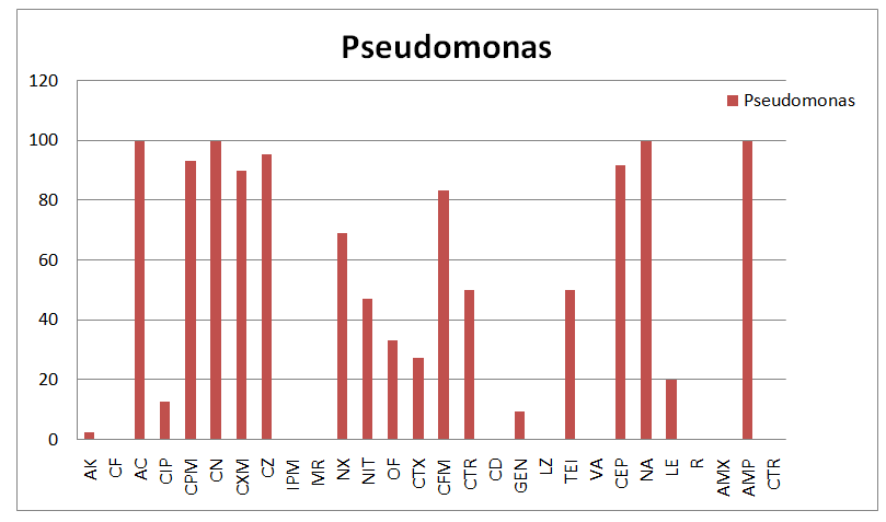 | Proteus | Pseudomonas | Klebsiella | E. coli | Staphylococci | |