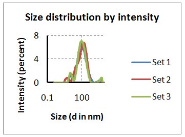 UV-Vis spectroscopy measurements of synthesized Silver nanoparticles were characterized by Perkin-Elmer UV-Vis spectrophotometer. The Scanning range for the samples was 200 -700 nm. In order to find out the particle size distribution the Ag nanoparticle dispersed in water was studied and the data on particle size were extracted using a Zetasizer Nicomp, 380ZLS (Nicomp, USA) using the Dynamic Light scattering method.