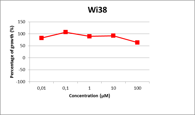Fig. 3: The growth of Wi38 cells vs concentration of Na[RuCl2(N-Ph-5-Cl-salim)2]
