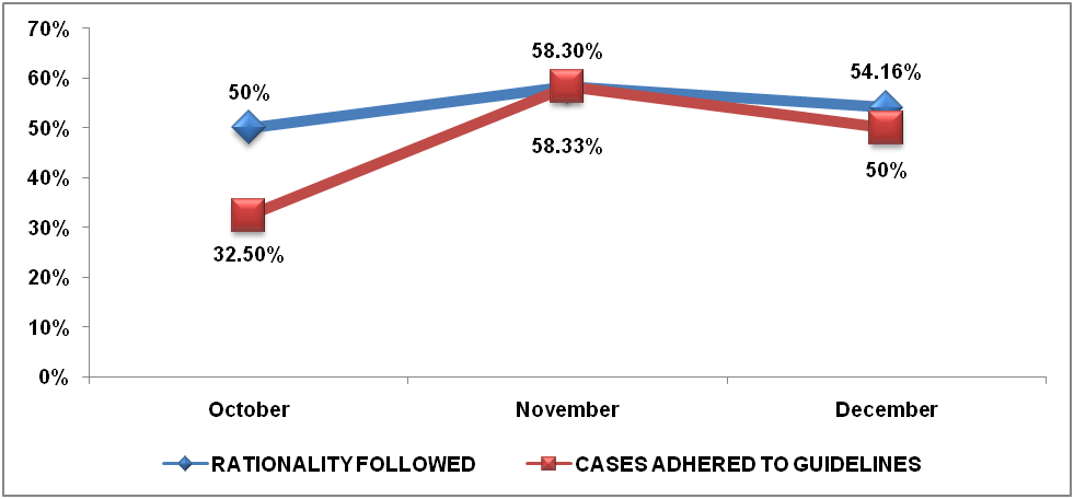 | Month | Total cases | Rationality followed | Rationality not followed | Cases with DRPs | Cases with adherence to guidelines |