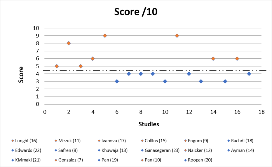 | Kivimaki (22) | Y | Y | N | N | N | N | N | N | N | Y |