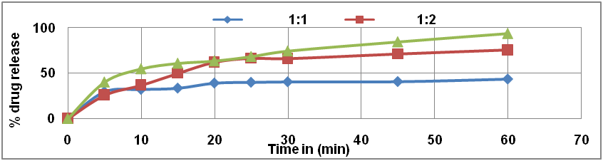 Fig. 4: Percent cumulative drug release of different furosemide: gel ratio’s