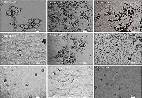 The above procedure was employed to prepare the CHI and SLS solutions. Subsequently, 10 mL of SLS was placed in an ultrasonic bath (Ultrasonik TMN ey, USA) and 10 mL of chitosan dispersion was added drop wise for 1 h. Further, ~20 mg of AA was added and the resulting dispersion was sonicated for 1 h keeping the temperature below 40°C. The dispersion was then homogenized (Ultraturrax, IKAT18, Campinas, Brazil) at 7000 rpm for 5 minutes.