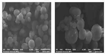 The morphology of RM loaded SLNs was examined using scanning electron microscopy. The photographic result shows a fine spherical shape, smooth surface, and particle size was within the nanometric range Fig.16.