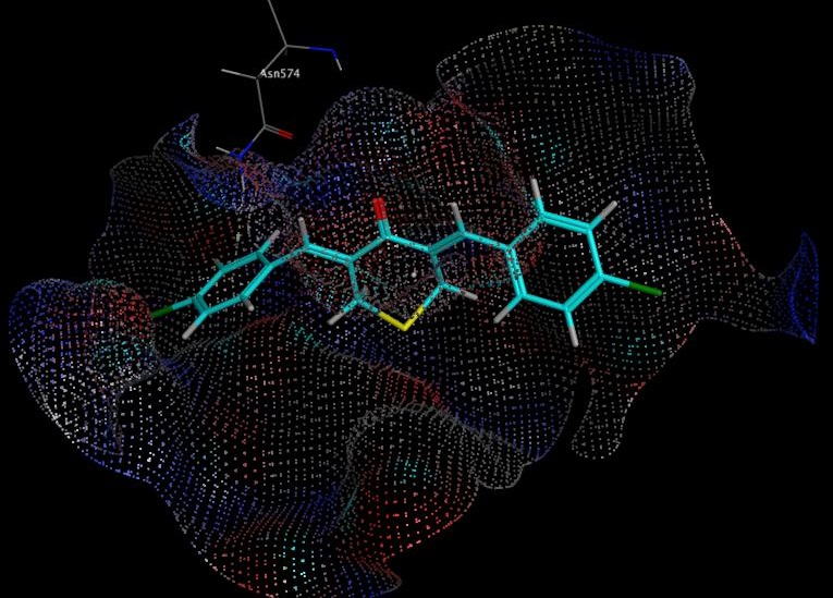 Conclusion: The results of the docking study show that 3,5-bis-(3,5-dichloro-4-hydroxybenzylidene)-tetrahydro-4H-thiopyran-4-one (D156) has a better potential antibacterial compound than HGV-6.