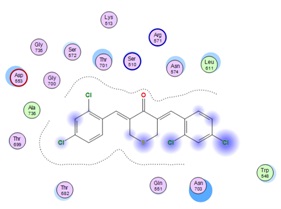 Keywords: Molecular docking studies, Chemical interaction, 3,5-bis-(3,5-dichloro-4-hydroxyzylidene)-tetrahydro-4H-thiopyran-4-one (D156), antibacterial