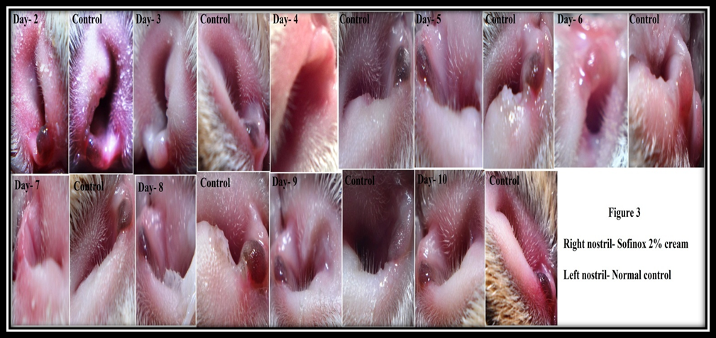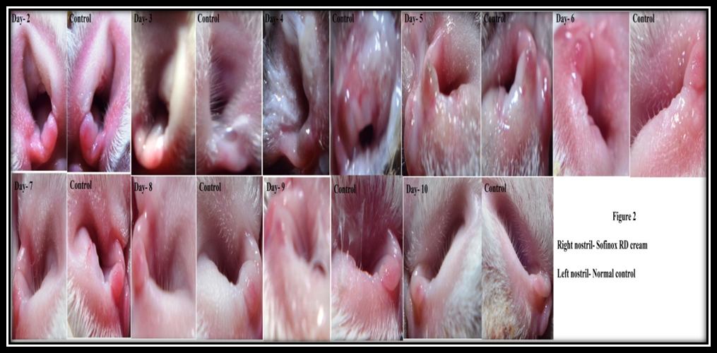 Fig. 2: Effect of Sofinox RD cream Photographs of both nostrils of rabbits from day 2nd-day 10th)