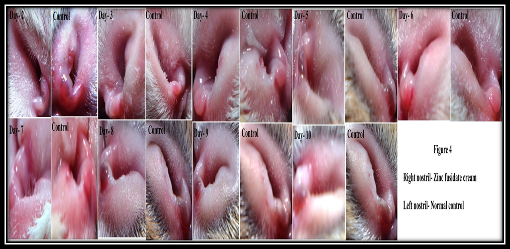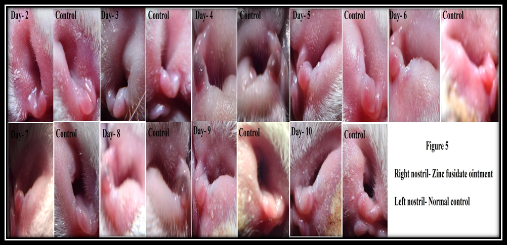 Fig. 4: Effect of Zinc fusidate cream (Photographs of both nostrils of rabbits from day 2nd - day 10th)