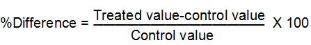 In the present study, all results were expressed as mean±standard error of the mean. Statistical Package for the Social Sciences program, version 14.0 was used to compare significance between every two groups. The difference was considered as statistically significant when p˂0.05. Percentage difference representing the percent of variation for the corresponding control group was calculated according to the following formula: