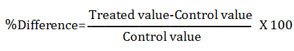 All results of the present study were expressed as mean±S. E. of the mean. The statistical Package for the Social Sciences (SPSS) program, version 19.0 was used to compare the significance between each two groups. The difference was considered significant when P ˂0.05. Percentage difference representing the percent of variation with respect to the corresponding control group was calculated according to the following formula: