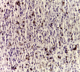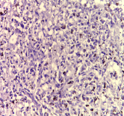 Also, for vascular endothelial growth factor, samples were taken from the spleen tissue of rats of the different groups and fixed in 10% formalin saline washed, dehydrated and then cleared and imgded in parafin. Sections were then cut into 5 μ thick by sledge microtome then fixed on positive slides. Slides were placed in a coplin jar filled with 200 ml of triology working solution (Cell Marque, CA-USA, Cat. #920P-04), which combines the three pretreatment steps: deparaffinization, rehydration and antigen unmasking. Then, the jar was securely positioned in the autoclave. Sections were then washed and immersed in Tris-buffer saline (TBS) to adjust the pH and these were repeated between each step of the IHC procedure. Quenching endogenous peroxidase activity was performed by immersing slides in 3% hydrogen peroxide. Broad-spectrum LAB-SA detection system (Invitrogen, Cat. #85-8943) was used to visualize any antigen-antibody reaction in the tissue. Background staining was blocked by putting 3 drops of 10% goat non-immune serum blocker on each slide and incubating them in a humidity chamber. Without washing, excess serum was drained, three drops of vascular endothelial growth factor (VEGF) rabbit polyclonal antibody (Thermo Scientific, USA, Cat. #RB-222-R7) were applied and slides were incubated in the humidity chamber overnight. Henceforward, a biotinylated secondary antibody from ultravision detection system anti-polyvalent HRP/DAB (Thermo Scientific, Cat. #TP-015-HD) was applied on each slide, followed by incubation with the streptavidin HRP enzyme conjugate (Thermo Scientific, Cat. #TP-015-HD). Then, 3,3 ́-diaminobenzidine (DAB) chromogen (Thermo Scientific, Cat. #TP-015-HD) was prepared and 3 drops were applied on each slide. DAB was rinsed, after which counterstaining with Mayer hematoxylin and coverslipping were performed as the final steps before slides were examined under the light microscope [42].