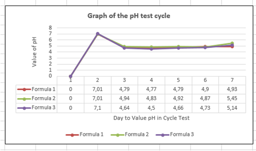 For the evaluation results of the Celastrol nanoemulgel preparations organoleptic test, from all doses obtained, pH and homogeneity showed the resulting preparations, in the form of opaque colored nanoemulgel, matched the drug dosage color index, namely FG NCP Transparant White, pH value 7.19, when the preparation was complete. However, the pH decreased after a cycle endurance test for 12 d in a row. The results can be seen in (fig. 3). The pH reduction in these preparations is due to the Celastrol compound’s physical and chemical properties, which basically have a pH between 4–6.