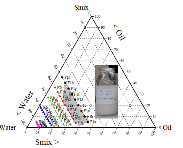 Syed HK, Peh KK. Identification of phases of various oil, surfactant/co-surfactants and water system by ternary phase diagram. APP Drug Res 2014;71:301–9.
