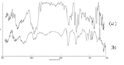Fig. 4: FTIR spectra of (a) ginger oil (b) formulation