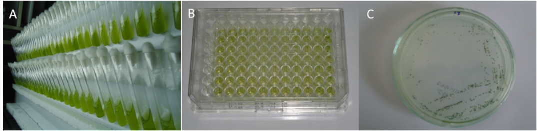 Collected samples were first stored at Green house under standard conditions (25 0C; Relative Humidity: 80;Photoperiod: 16h/8);before bringing them to the Algal culture facility (ACF). Wild samples were screened and using standard isolation techniques. Axenic cultures were developed and were maintained in the ACF. Light microscopic studies and morphological identification was done using published article and the available algal monographs [4].