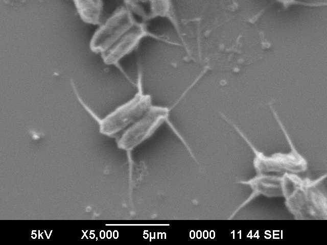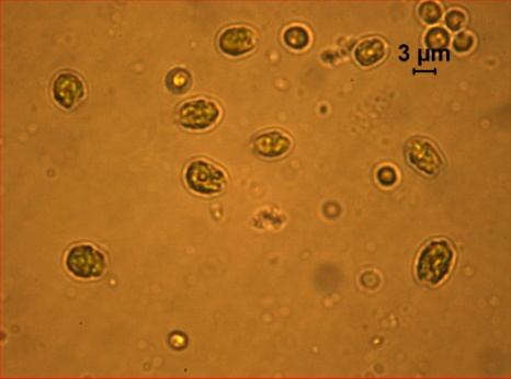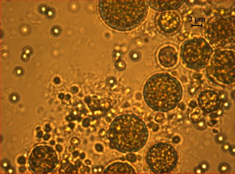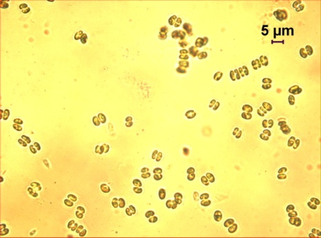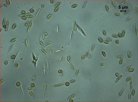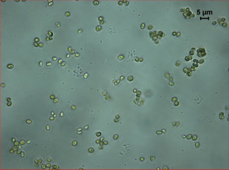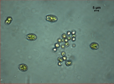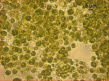 In the primary screening a total of 21 genera namely; Ankistrodesmus, Botryococcus, Bracteococcus, Chlamydomonas, Chlorella, Chlorococcum, Closteridium, Closterium, Cosmerium, Desmodesmus, Ecballosystopsis, Franceia, Gonyostomum, Gymnodinium, Kirchneriella, Lagerheimia, Maesotaenium, Monoraphidium, Scenedesmus, Selenestrum, and Tetrallantus; of Chlrophycean micro algae were found predominantly in most of the water bodies of this unexplored area of Chotanagpurdry deciduous ecoregion. Out of these 21 genera, 20 species for seven genera were isolated successfully. Light microscopy and SEM of these isolates are presented in fig. 4 and 5 respectively. All the species were maintained at optimal conditions in ACF.