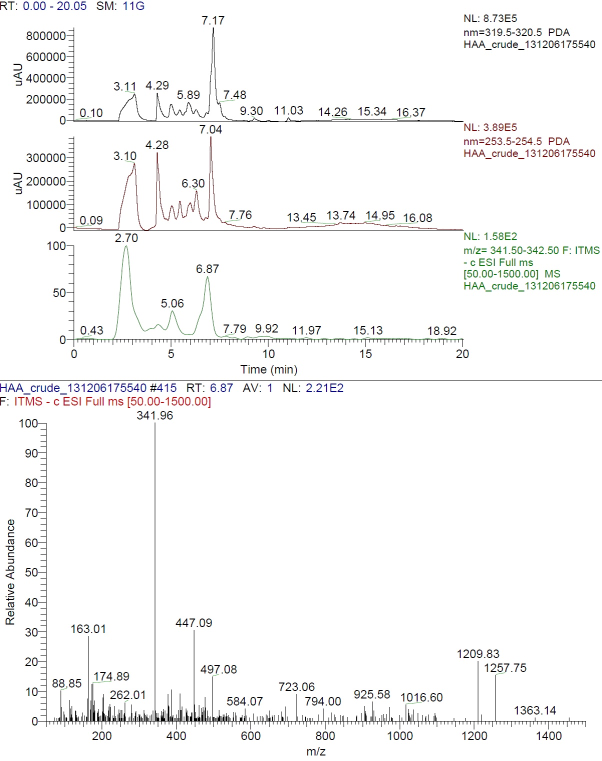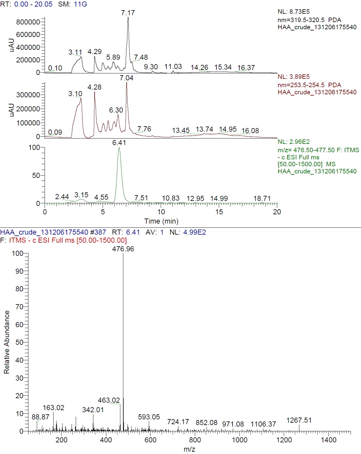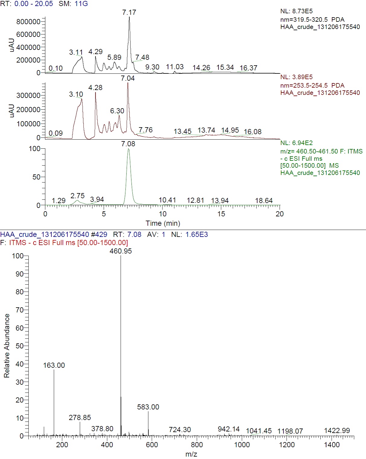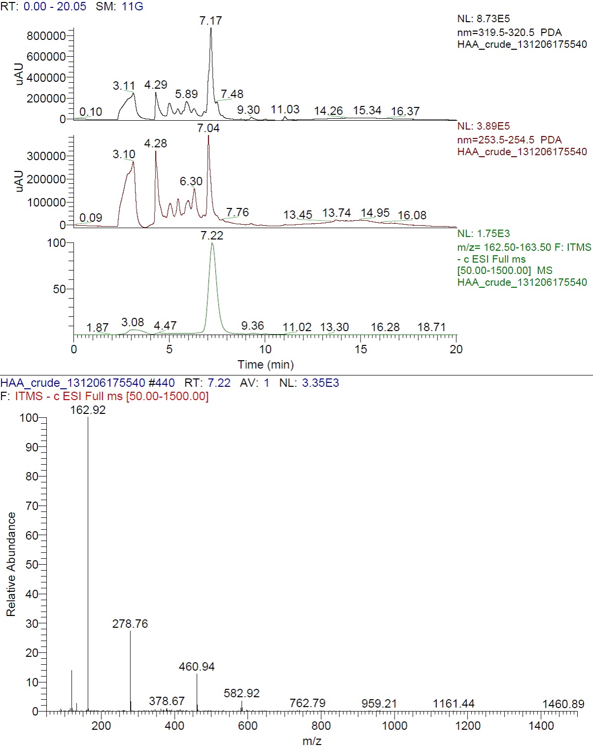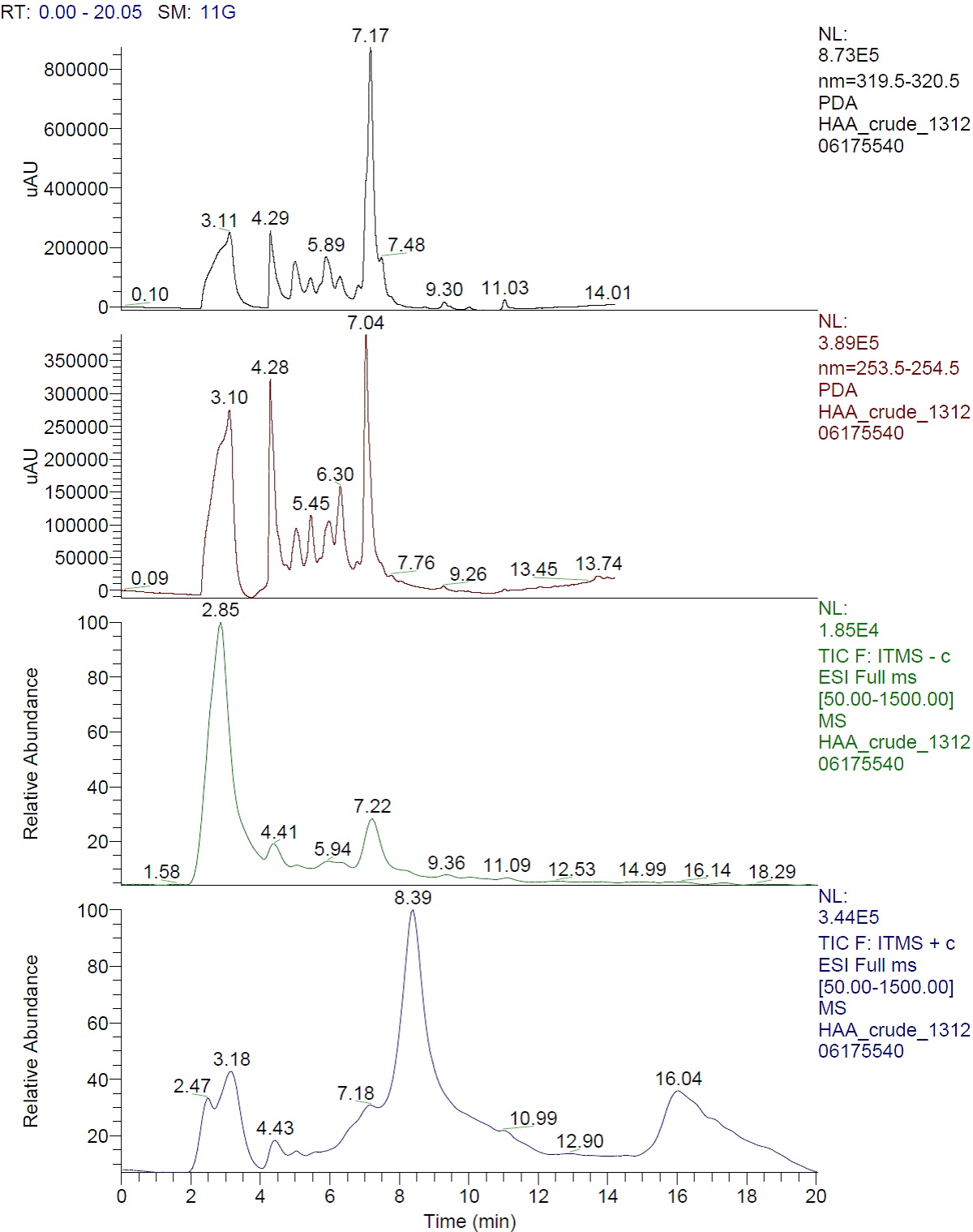 LCMS of defatted H. arifolia leaf extract (HALH)