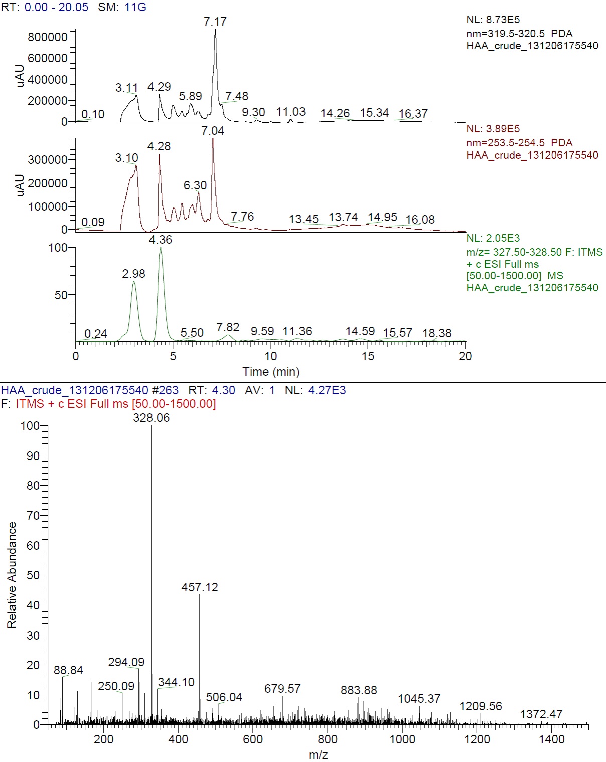 Fig. 3: TIC of the extracted m/z 328 at RT 4.30