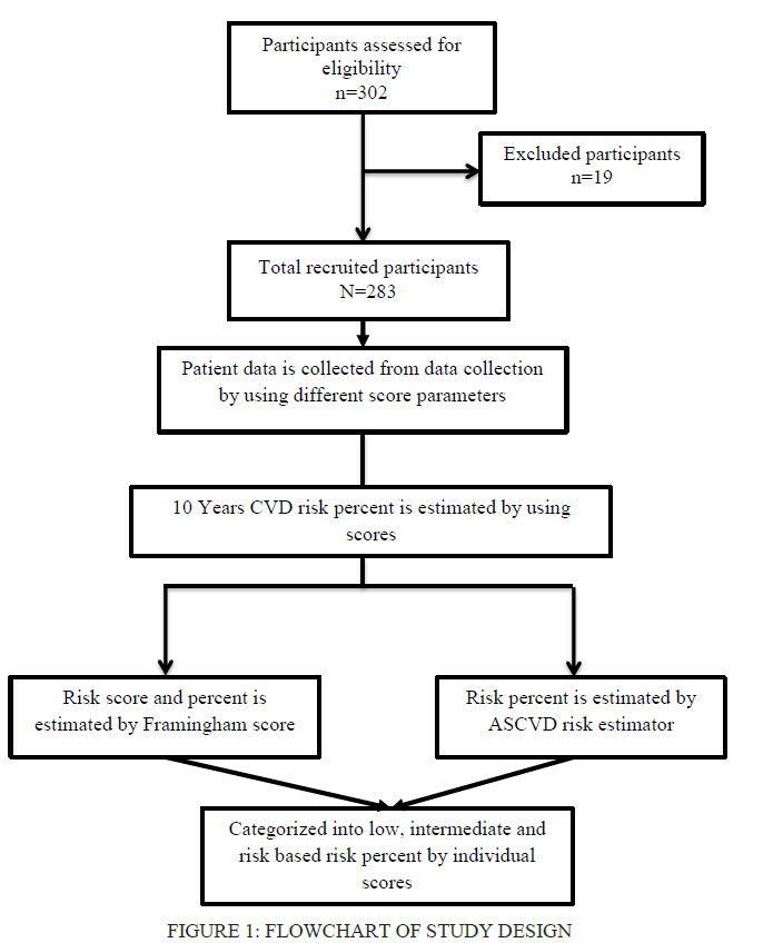 Methods: This is a cross-sectional observational study conducted for a period of 6 mo among 283 subjects. Total risk was estimated individually by using Framingham Risk Scoring Algorithm and ASCVD risk estimator.