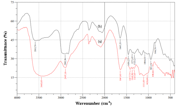 Fig. 3: Infrared spectrum of HPMC BB (a) and HPMC 60SH (b)