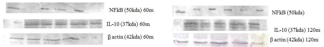 Immunoblotting assay of NFκB and IL-10 at 60 and 120 min in rats treated with MEEP