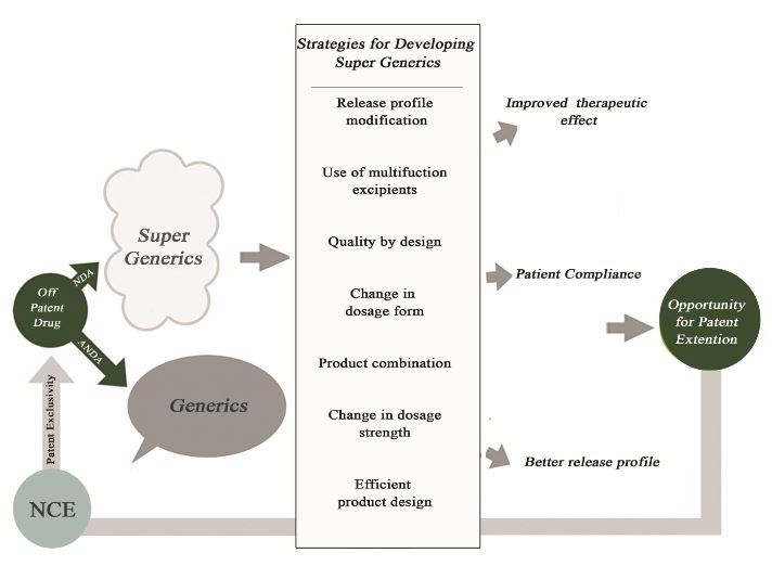 Super Generics are recent generic product categories that are differentiated by improved pharmacokinetics, delivery, patient convenience /or an improved manufacturing process and with better therapeutic effects from me to generic products. For approval of marketing of Super generics companies have to file the new drug application (NDA).