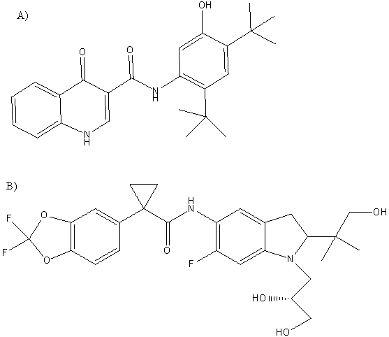 Fig. 1: Structures of A) ivacaftor and B) tezacaftor