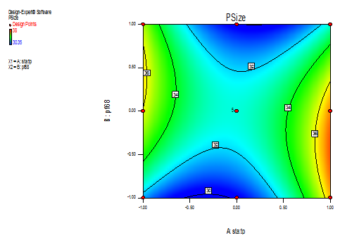 Particle size nm =32.53+0.52A-0.040B-1.97AB+3.92A2-2.40B2…… (2)
