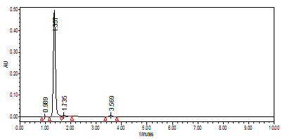 The assay was performed by high performance liquid chromatography (HPLC), equipped with a Waters 515 pump, a Waters 2487 dual l absorbance detector, and a C18 Waters symmetry® column (Novapak C 18 250×4.6 mm, packed with 4 µm particle size), flow rate = 1 ml/min). Calculation was done by using em power 2 Software.