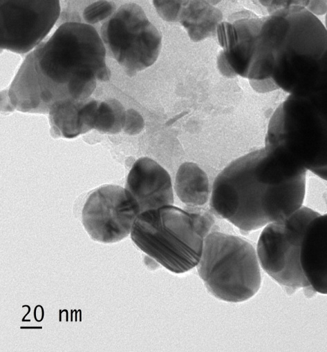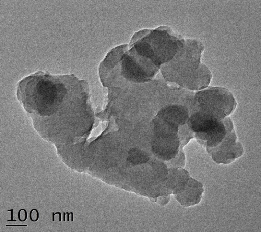TEM image shows the size distribution and shape of nanoparticles based on the transmittance of the electron beam through an ultra-thin specimen and transmission electron microscope image reveals the size of the synthesized silver nanoparticle is in the range of 120-140 nm and iron oxide nanoparticles is in the range of 26-30 nm. TEM photographs showed spherical nanoparticles of iron oxide and silver, which appeared as deep dark spots and the dimensions are well consistent with the SEM observations [21].