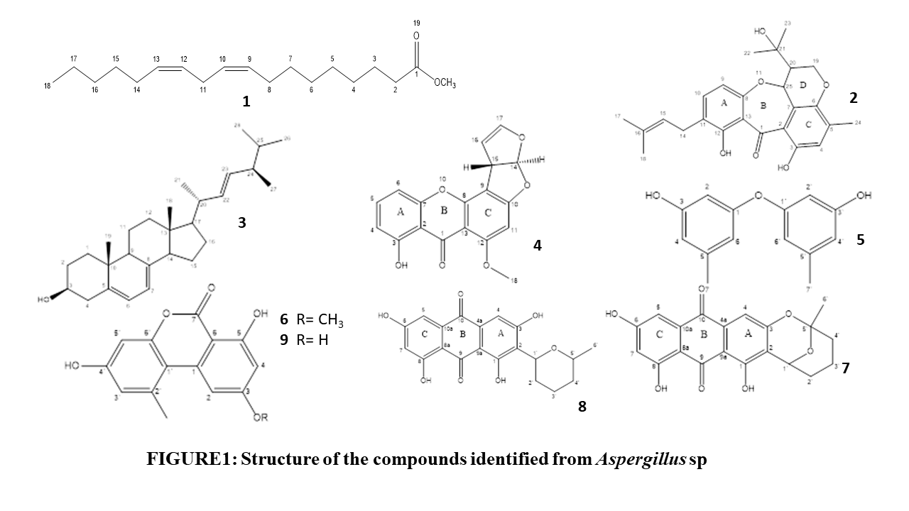 Fig. 1: Structures of the compounds identified from Aspergillus sp