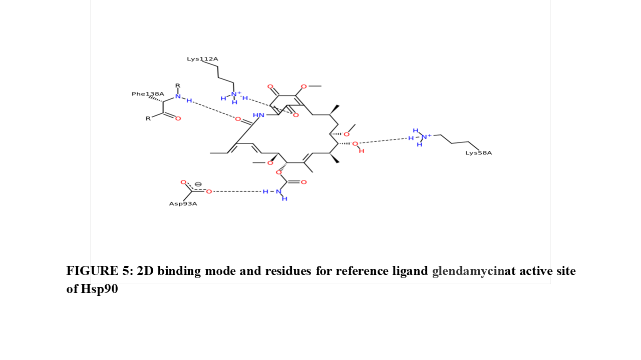 Fig. 5: 2D binding mode and residues for reference ligand geldanamycin active site of Hsp 90