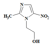 Metronidazole (fig. 1) chemically is 2-(2-methyl-5-nitro-1H-imidazol-1-yl) ethanol [1]. Metronidazole is a nitro imidazole antibiotic drug used against anaerobic organisms, amoebozoa infections and antiprotozoal. It is frequently used for mild-to-moderate Clostridium difficile infection [2]. Metronidazole is also used to treat bacterial vaginosis, pelvic inflammatory disease, pseudomembranous colitis, aspiration pneumonia, rosacea, fungating wounds, intra-abdominal infections, lung abscess, gingivitis, amoebiasis, giardiasis, trichomoniasis, and infections caused by susceptible anaerobic organisms such as Bacteroides fragilis spp, Fusobacterium spp, Clostridium spp, Peptostreptococcus spp and Prevotellaspp [3]. It has a molecular formula of C6H9N3O3 and a molecular weight of 171.15 g/mol.