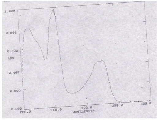 Suitable wavelength for the HPLC analysis was determined by recording UV spectrums in the range of 200-400 nm for individual drug solutions of Nalidixic acid and Metronidazole. Suitable wavelength selected for simultaneous estimation is 271 nm (fig. 3-4).