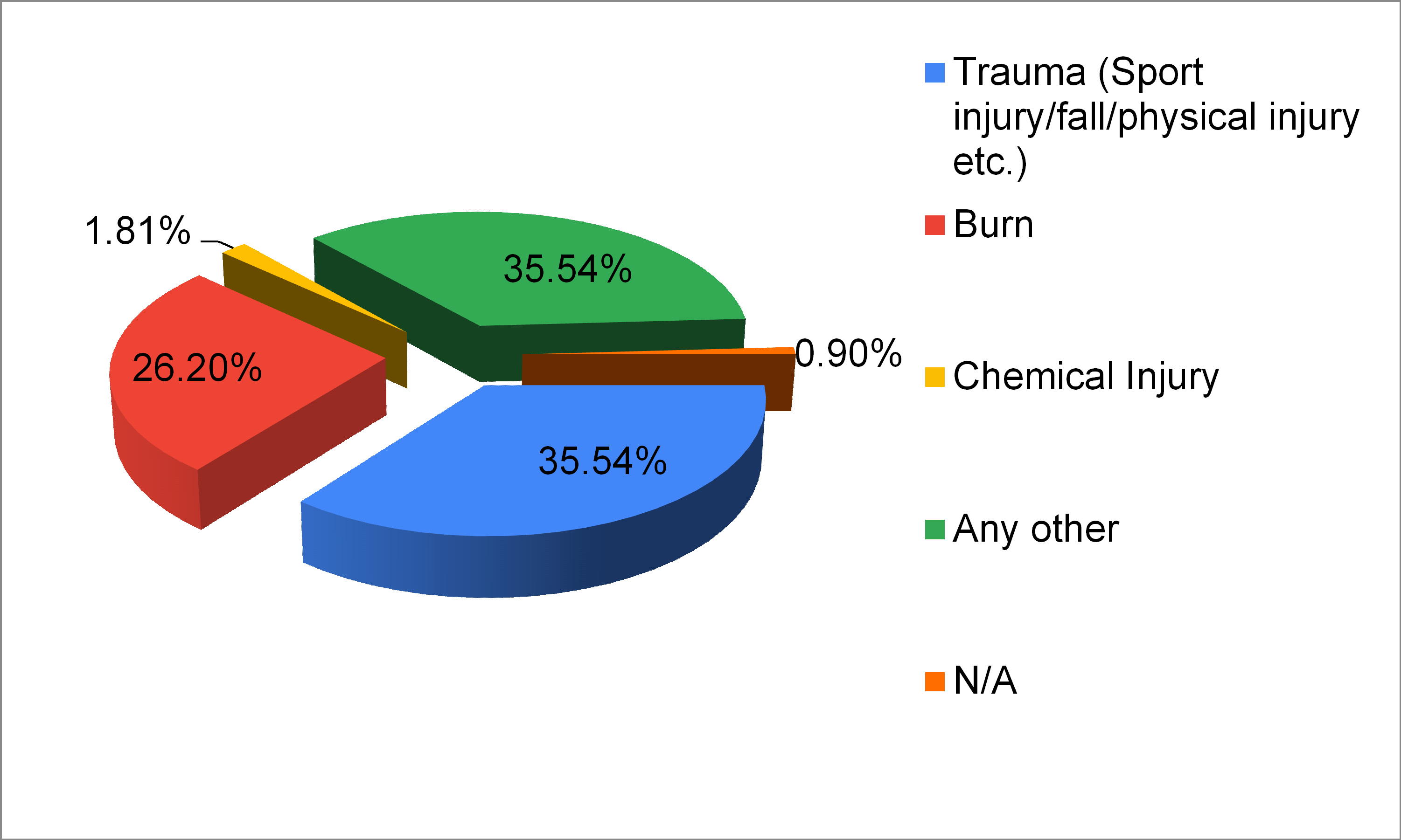The survey was conducted to know the attitude of the persons regarding wound care. The survey was based on 20 questions to know about wound care among people. 363 numbers of responses were received between 14 to 72 y of ages. The analyses of 332 respondents were considered. The criterion of inclusion was that they have already suffered from wounds in their life. All other respondents were excluded because either they have not ever suffered from wounds or they have not filled the questionnaire properly. Out of 363, 28 persons showed no history of the wound and 3 persons did not fill the form properly.