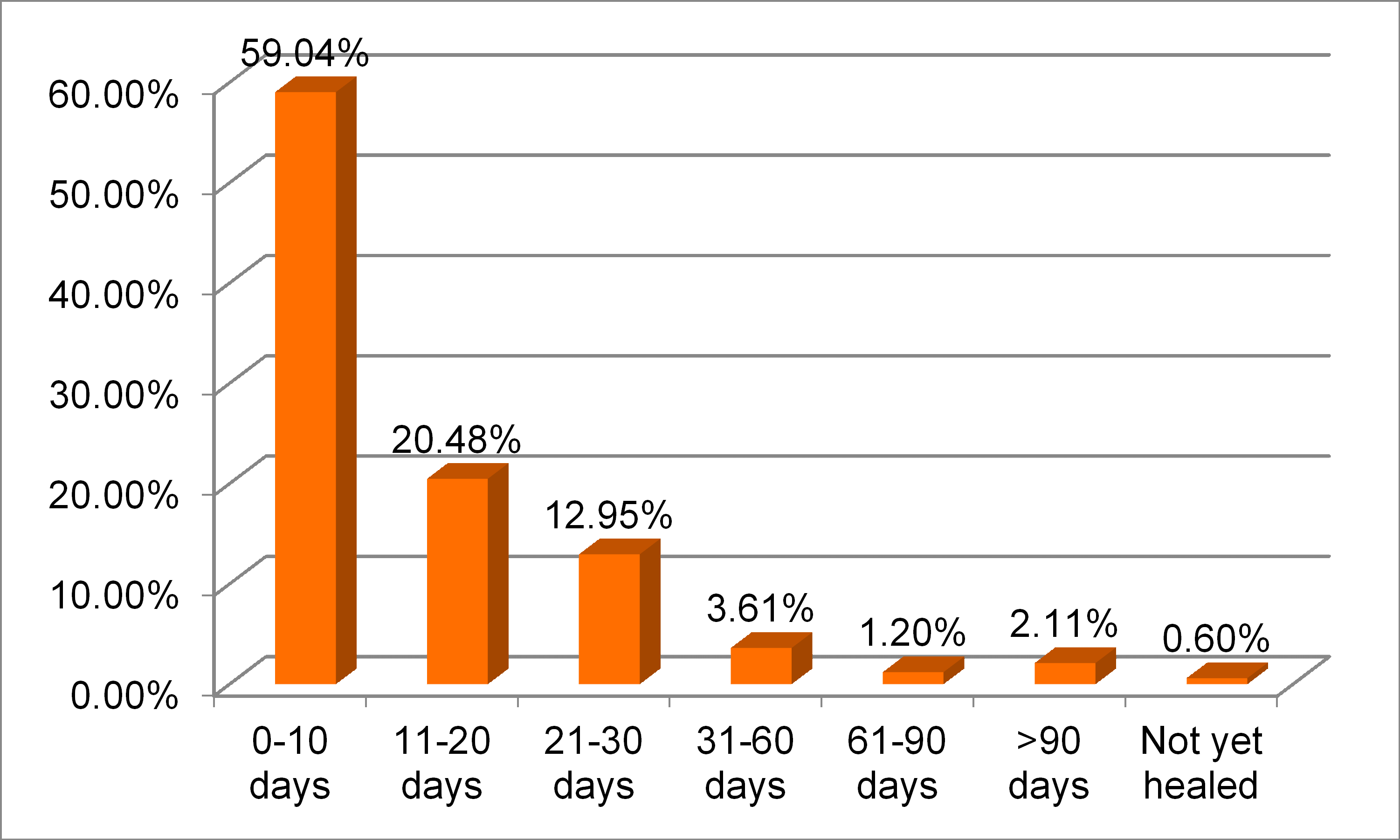 Conclusion: The survey revealed that although most of the population took doctor’s advice for the treatment of wounds but yet there is a significant population (33.73%) who took self-medication for this treatment, which should be minimized by providing awareness among them. Most of the wounds were healed within 10 d. Most of the population took medication (analgesic, antibiotic) for treatment. The use of antibiotics by self-medication is a matter of concern nowadays. As a global threat is antibiotic resistance. These drugs should be prescribed under medical supervision.