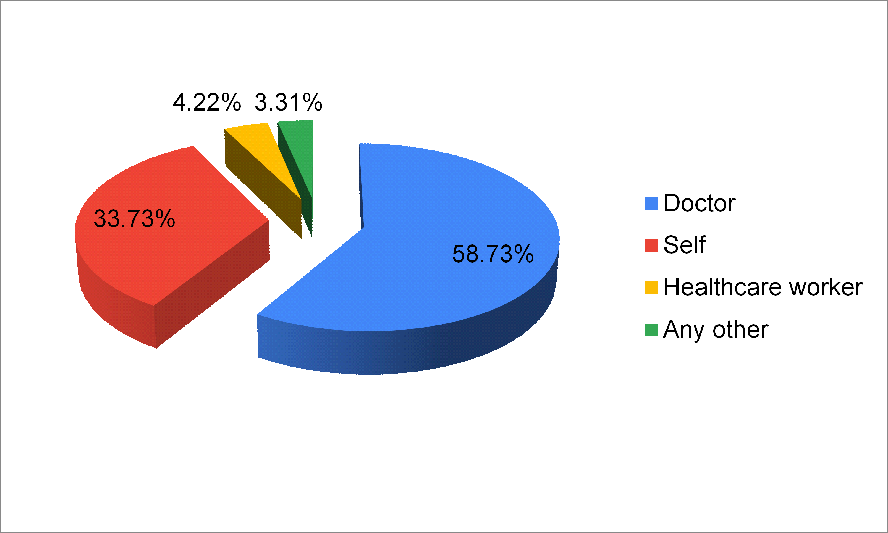 Results: The total number of participants was 332. Out of which female participants were dominated 174(52.4%) and male participants were 158(47.59%). The survey revealed that 58.73% of participants took doctor’s advice, 33.73% took self-medication, 4.22% took healthcare worker advice and, 3.31% took any other advice for treatment.
