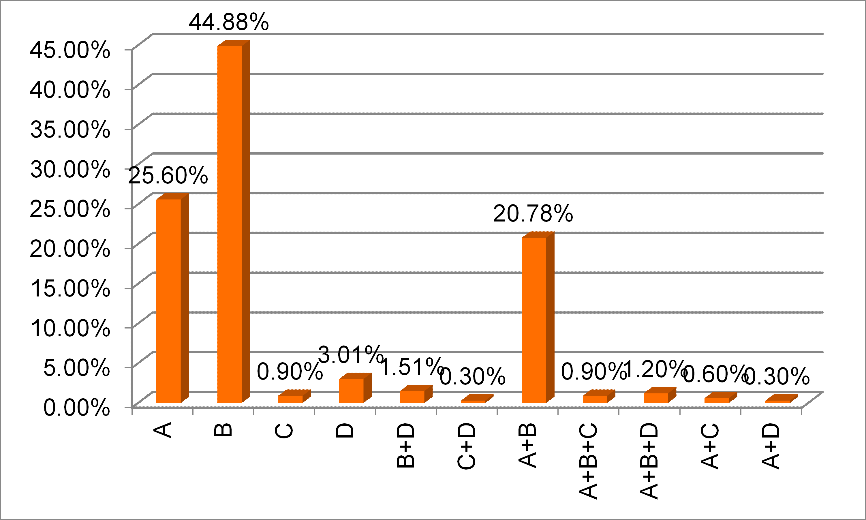 Fig. 16: Subjects with different management ways, in this bar chart, A–Rest, B–Cleaningness, C–Heat, D–Cold