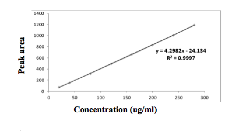 Fig. 2: Calibration curve of EGCG in green tea extract, to ensure the presence of a suitable amount of EGCG within the extract with further dilutions, we constructed a calibration curve