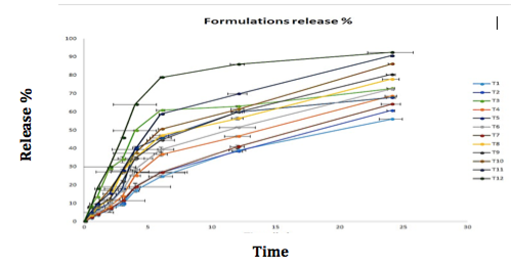 Values are presented as mean±SD, PDI index range was (0.043-0.282), formulation T12* (93.32 %) showed maximized drug content with maximal ethanol content and increased lecithin concentration.