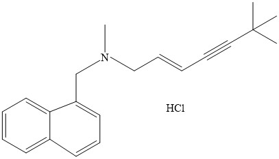Terbinafine hydrochloride (TH) is (E)-N,6,6-trimethyl-N-(naphthalen-1-ylmethyl) hept-2-en-4-yn-1-amine; hydrochloride. It is an allylamine, which has a wide spectrum of antifungal activity in fungal infections of the hair and skin such as Pityriasis Versicolor. Terbinafine, a synthetic allylamine antifungal agent, inhibits ergosterol biosynthesis via squalene epoxidase. When exposed to terbinafine, fungi accumulate squalene while becoming deficient in ergosterol, an essential component of fungal cell membranes [1, 2]. The inhibition of squalene epoxidase leads to fungistatic and fungicidal action. Terbinafine is an orally and topically active drug with primarily fungicidal activity against a broad spectrum of fungi, including dermatophytes, filamentous, dimorphic organisms, and some yeasts such as Candida parapsilosis [3, 4].